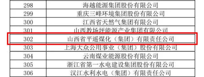 近日,2021中國能源(集團)500強榜單發(fā)布,平遙煤化集團再次入圍,榮列第302位。